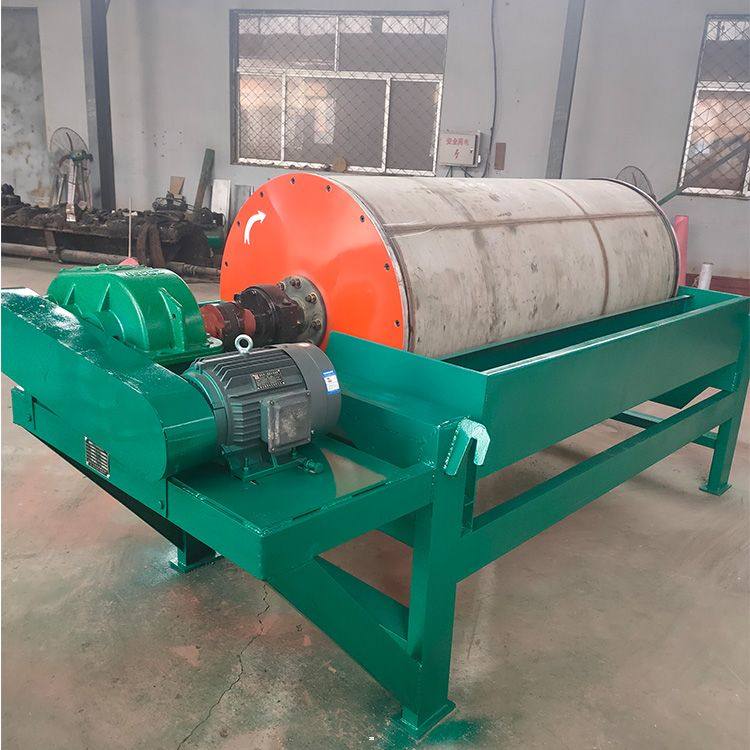 磁選機(jī)有許多類型,濕式永磁筒式磁選機(jī)是其中比較常用的一種。濕式永磁筒式磁選機(jī)主要由圓筒、輥筒、刷輥、磁系、槽體、傳動部分等組成。圓筒由2-3mm不銹鋼板卷焊成筒,端蓋為鑄鋁件或工件,用不銹鋼螺釘和筒相連。電機(jī)通過減速機(jī)或直接用無極調(diào)速電機(jī),帶動圓筒、磁輥和刷輥?zhàn)骰剞D(zhuǎn)運(yùn)動。磁系為開放式磁系,裝在圓筒內(nèi)和裸露的全磁。磁塊用不銹鋼螺栓裝在磁軛的底板上,磁軛的軸伸出筒外,軸端固定有拐臂。扳動拐臂可以調(diào)整磁系偏角,調(diào)整合適后可以用拉桿固定。槽體的工作區(qū)域用不銹鋼板制造,機(jī)架和槽體的其他部分用普通鋼材焊接。